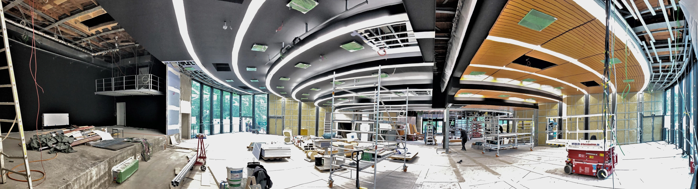 Das Innengerüst des zweigeschossigen, unter Denkmalschutz stehenden Veranstaltungssaales steht