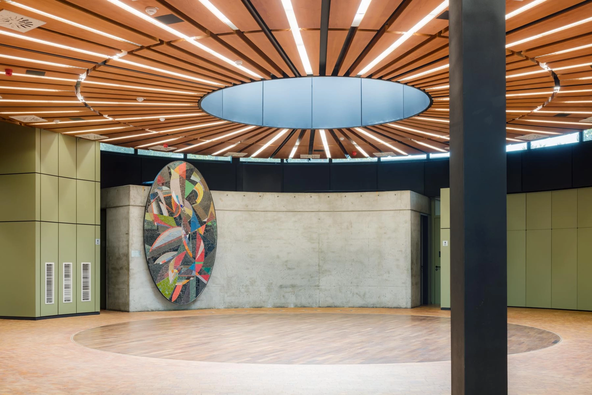 Die ehemalige Militärhalle wurde durch minimalinvasive Maßnahmen und zirkulären Umbau zu einem Begegnungsort transformiert – ein Beispiel für Nachhaltigkeit in der Architektur. Ausgezeichnet mit dem „Deutschen Nachhaltigkeitspreis Architektur 2024“!